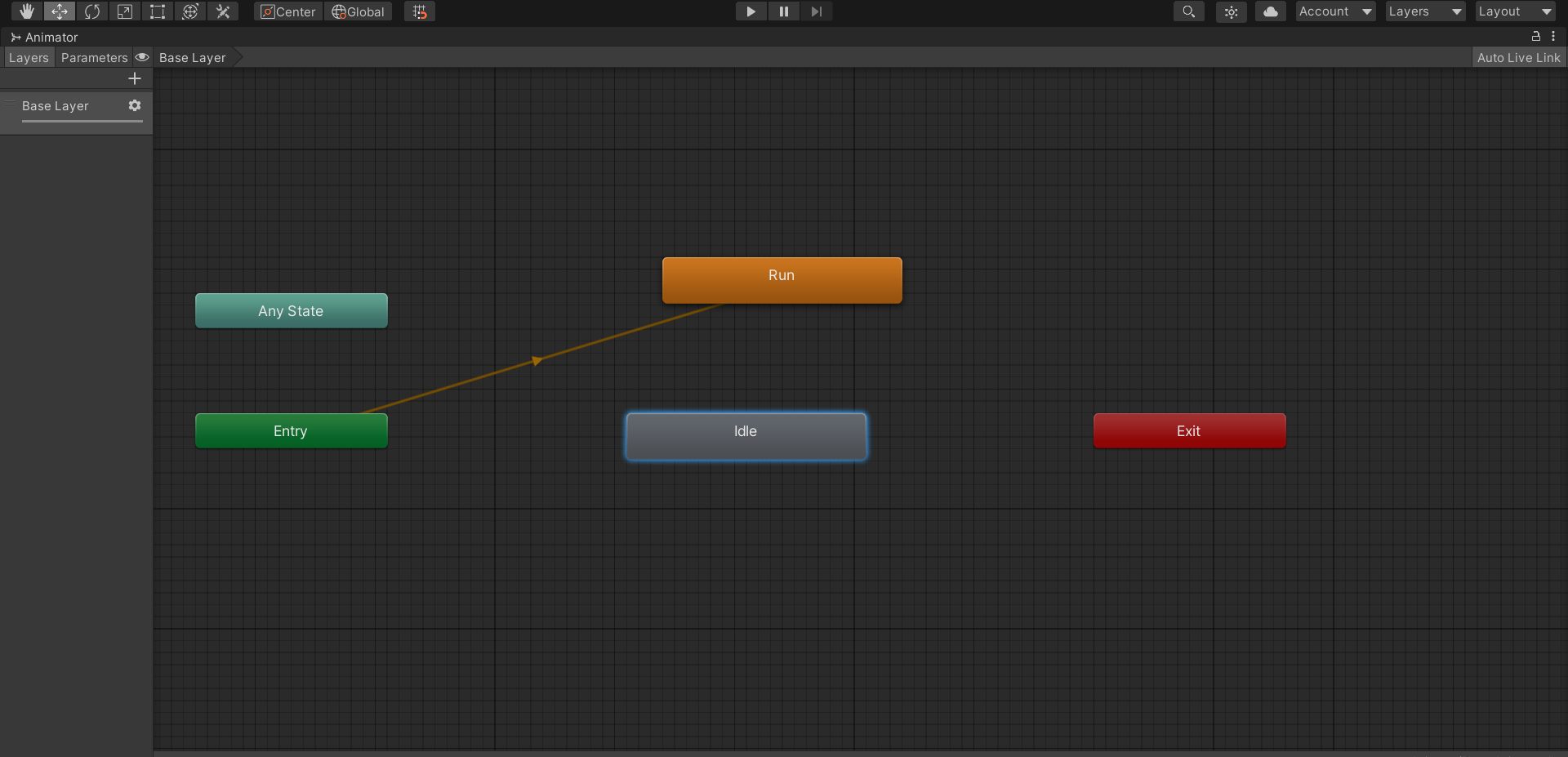 any state노드는 애니메이션이 재생되고있어도 트랜지션의 애니메이션 변경 조건이 충족되면 충족된 애니메이션 스테이트로 넘어가게하는 노드이다 사실 이노드는 Has Exit Time을 통해 해결할 수 있을거같은데 왜존재하는지 잘모르겠다