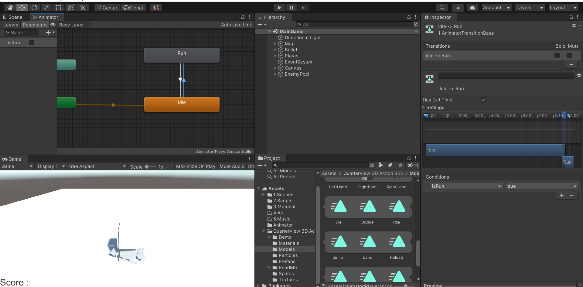 Bool 형 변수를 하나 생성한다음 이름은 isRun으로 만들겠다