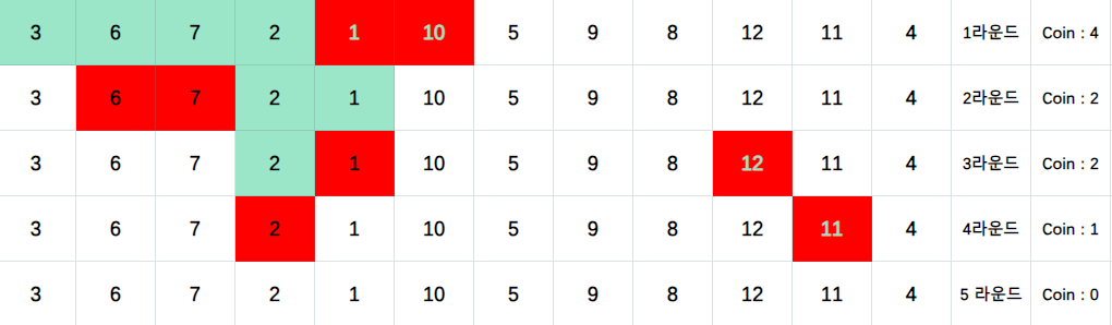 각 경우 마다 소비되는 Coin의 갯수가 달라집니다