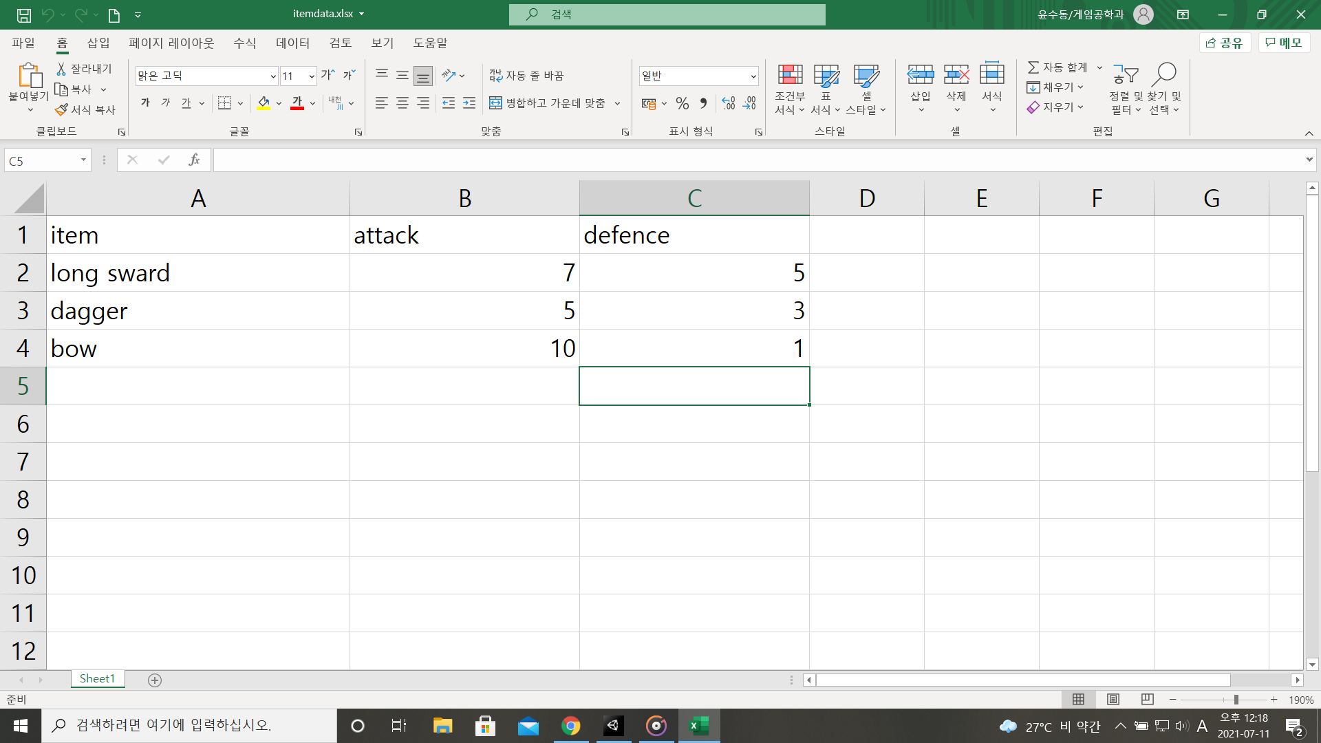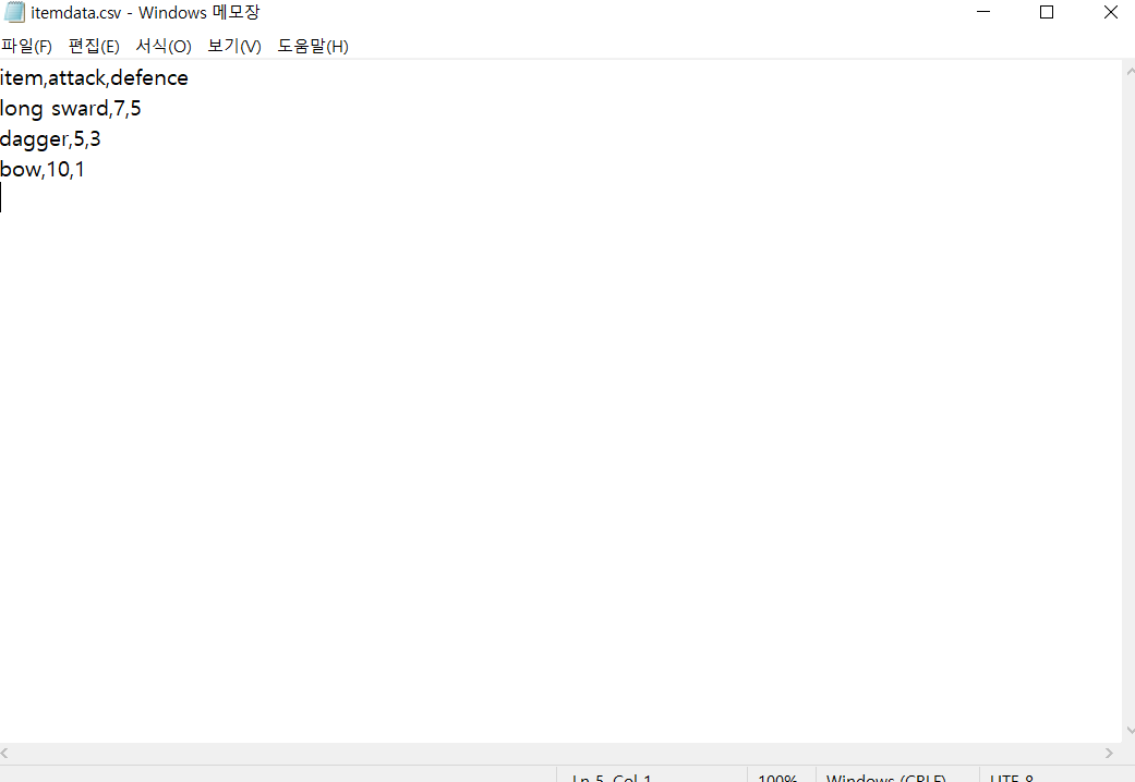 위과정을 거치면 아래와같은 CSV 파일을 얻을 수 있다 이렇게 얻은 파일을 유니티 Resources 폴더 안에 넣어주면 된다