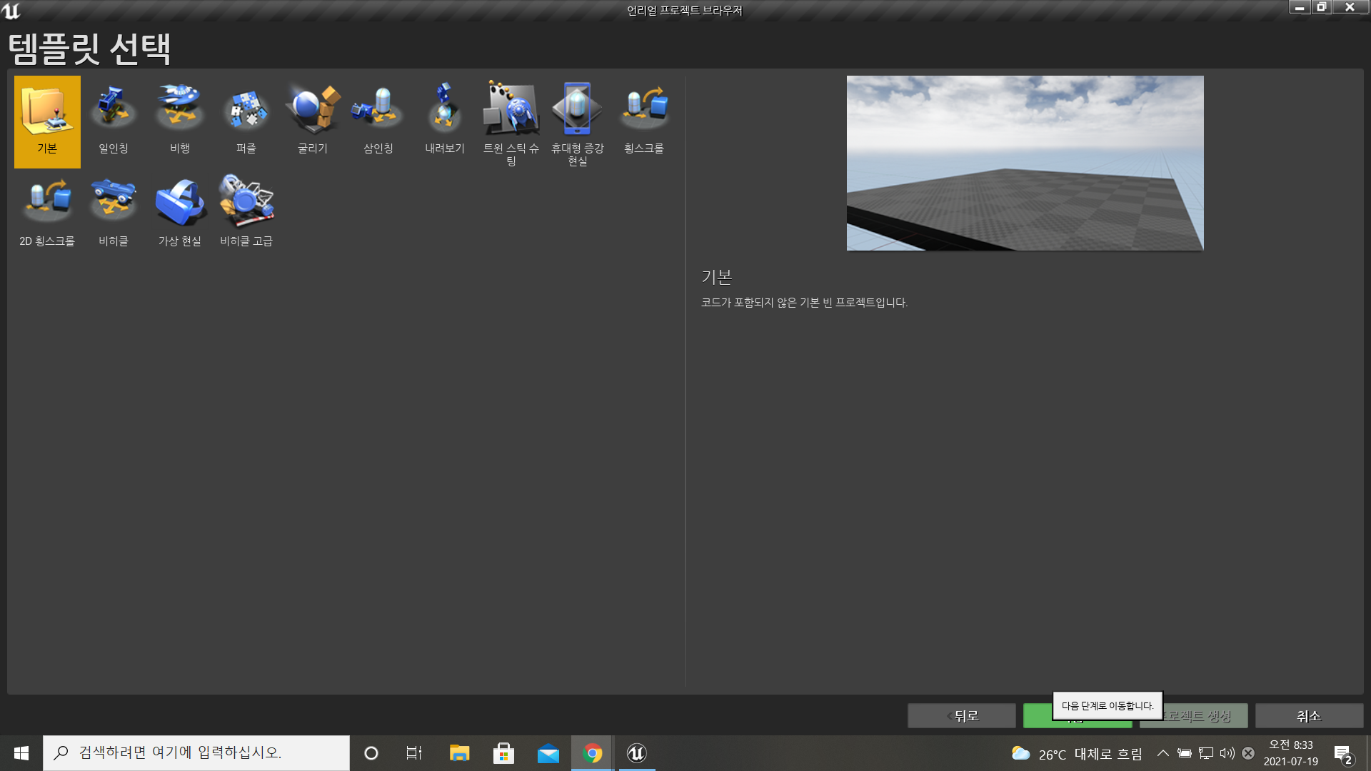 템플릿을 선택하라고 하는데 기본을 누르고 다음을 누르면된다