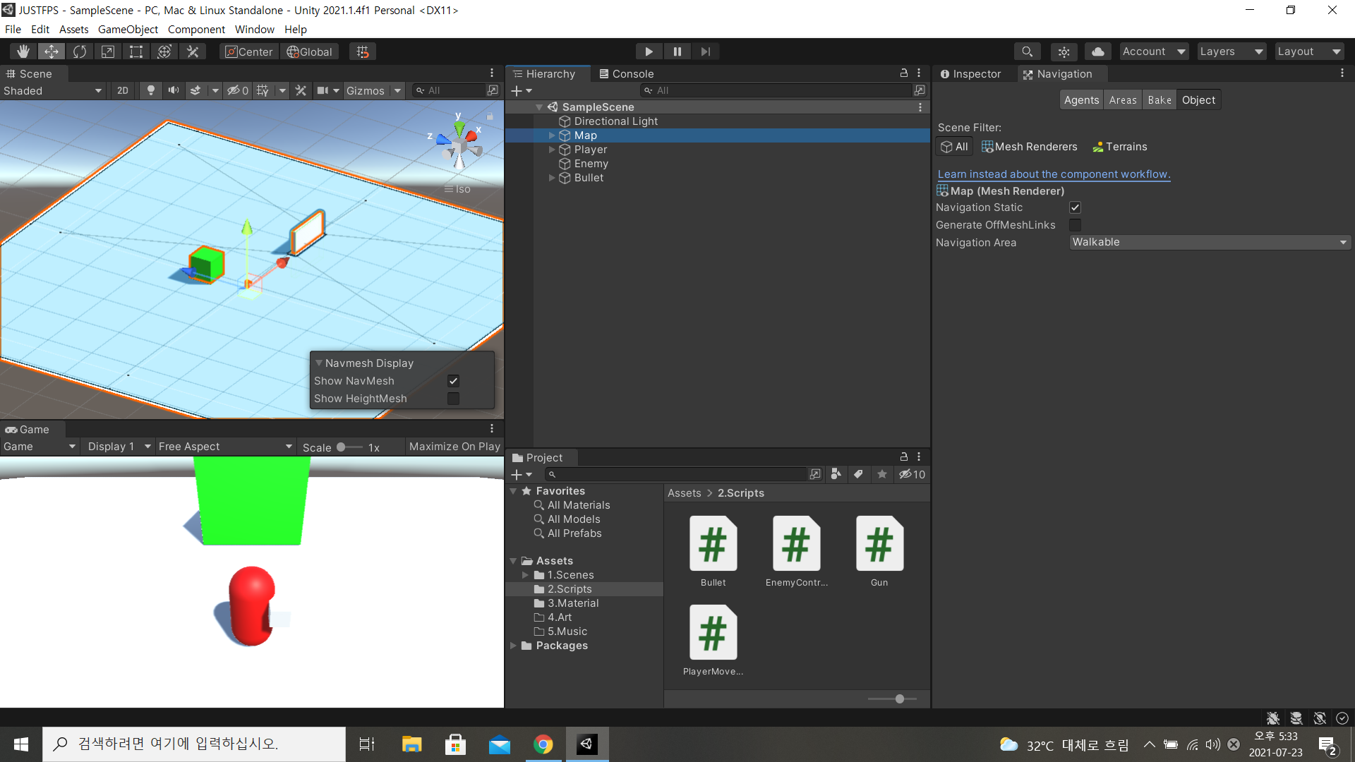 게임을 플레이할 맵을 클릭한 다음에 object에서 Navigation Static을 체크한다