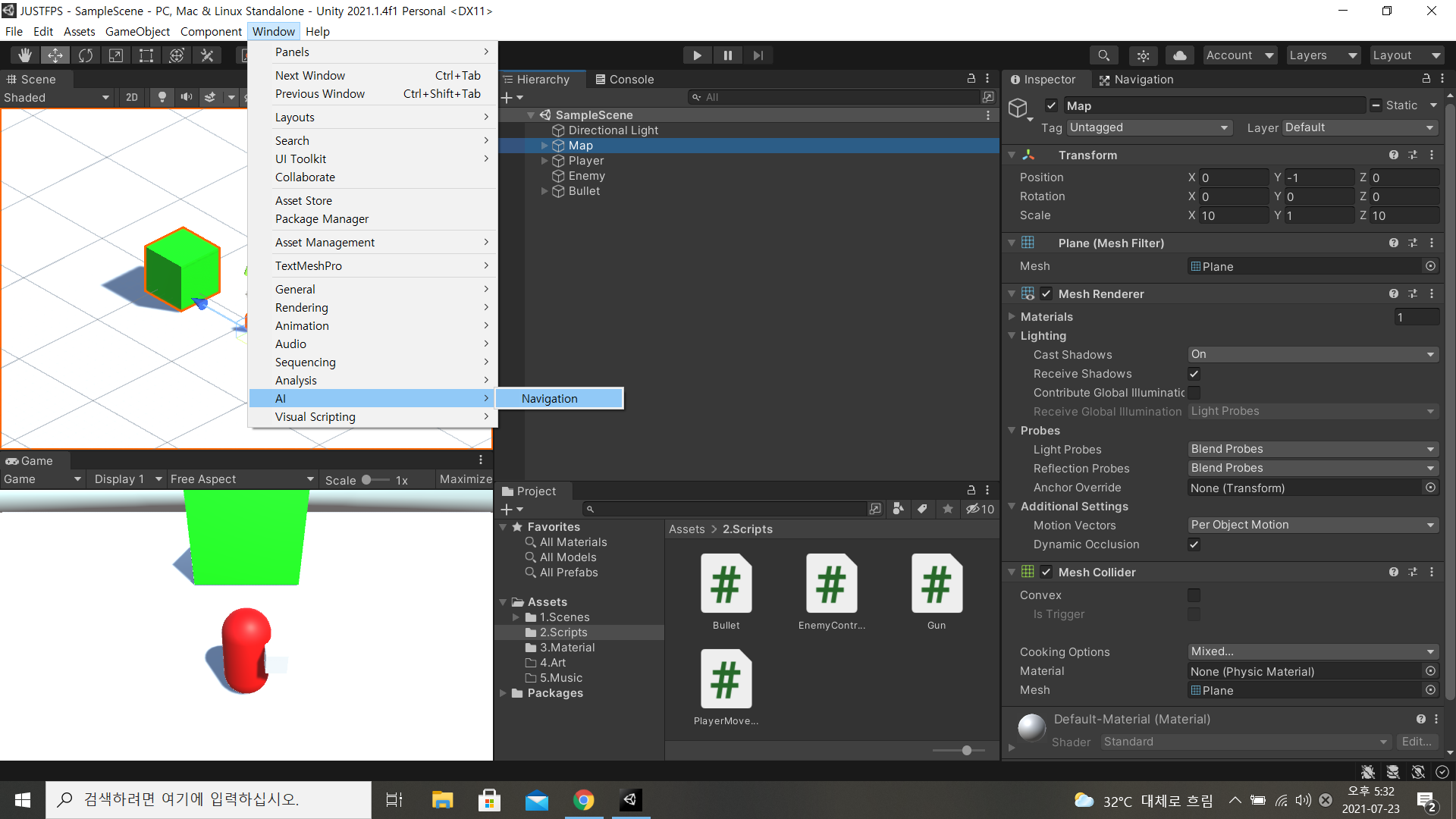 우선 [Window] -> [AI] -> [Navigation]창이 필요하다